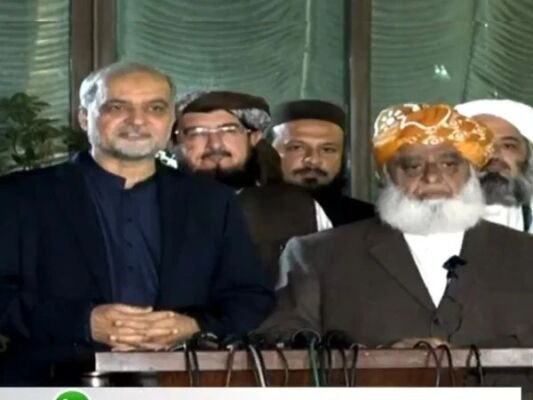 افغان حکومت سے کہنا چاہتے ہیں پاکستان سے بہتر تعلقات کے لیے بات چیت کریں، سربراہ جمعیت علمائےا سلام پاکستان کے سربراہ مولانا فضل الرحمان نے جماعت اسلامی پاکستان کے امیر حافظ نعیم الرحمان کے ہمراہ میڈیا سے گفتگو میں کہا ہے کہ عیدالفطر کے بعد پورے ملک میں عوامی مہم چلائی جائے گی۔جماعت اسلامی پاکستان کے امیر حافظ نعیم الرحمان نے اسلام آباد میں جمعیت علمائے اسلام پاکستان کے سربراہ مولانا فضل الرحمان سے ملاقات کی جس میں مختلف امور پر تبادلہ خیال کیا گیا اور بعد ازاں دونوں رہنماؤں نے میڈیا سے گفتگو کی۔مولانا فضل الرحمان نے کہا کہ حافظ نعیم الرحمان صاحب کو خوش آمدید کہتے ہیں اور ملاقات میں چند امور پر ہم نے مشاورت کی ہے، 19 فروری کو بورڈ آف پیس کا اجلاس اصل میں اقوام متحدہ کو بائی پاس کرنے کی کوشش ہے، یہ عالمی ادارے کی افادیت کو چیلنج کر رہا ہے۔انہوں نے کہا کہ ہماری حکومت کہہ چکی ہے، ایجنڈے میں تبدیلی لائی گئی تھی، اس کے باوجود اس فورم پر جانا ٹھیک نہیں، نیتن یاہو قاتل اور سفاک ہے، لاکھوں لوگوں کو قتل کیا گیا اور فلسطینیوں کی لاشیں اب بھی کھنڈرات میں دبی ہوئی ہیں۔ان کا کہنا تھا کہ آپ کہتے ہیں ہم اس سفاک کے ساتھ امن کی بات کرنے جا رہے ہیں، عوام سے کہتے ہیں ملی جذبے کا احترام کریں، ایسے اقدامات کیے جائیں کہ عالمی سطح پر فلسطینیوں کے خون سے مذاق نہ کیا جائے گا، اگر حکمران امریکی غلامی پر بضد ہیں تو ہم پھر آزادی کی تاریخ دہرانے کے لیے باہر نکلیں گے۔مولانا فضل الرحمان نے کہا کہ ہم نے آئندہ مشاورت جاری رکھنے پر اتفاق کیا ہے، عید الفطر کے بعد پورے ملک میں عوامی مہم چلائی جائے گی، جمعیت علمائے اسلام نے 12 مارچ کو مردان میں جلسے کا اعلان کر دیا ہے۔انہوں نے کہا کہ پاکستان ایک مرتبہ فلسطینیوں کا قتل عام کرچکا ہے، کیا ہم دوبارہ وہاں جاکر وہی کریں گے، جب آپ حماس کو غیرمسلح کریں گے تو آپ مسلمانوں سے لڑیں گے، ہم حکومت کو کوئی مہلت دینے کو تیار نہیں کہ وہ عالمی طاقتوں کی پراکسی بنے۔ان کا کہنا تھا کہ ایسے اقدامات کیے جائیں عالمی سطح پر فلسطینیوں کے خون سے مذاق نہ کیا جائے گا، اگر حکمران امریکی غلامی پر بضد ہیں تو ہم پھر آزادی کی تاریخ دہرانے کے لیے باہر نکلیں گے، ان اطوار کے ساتھ حکومت کو چلنے نہیں دیں گے۔سربراہ جمعیت علمائے اسلام نے کہا کہ پاکستان ناکام خارجہ پالیسی چلا رہا ہے جہاں تمام ہمسائیہ ممالک اور دوست ناراض ہیں، یہ پاکستان کی ناکام خارجہ پالیسی ہے کہ بھارت سے بھی دشمنی اور افغانستان سے بھی ناراضی، افغان حکومت سے کہنا چاہتے ہیں پاکستان سے بہتر تعلقات کے لیے بات چیت کریں۔انہوں نے کہا کہ پاکستان ایک دفعہ فلسطینیوں کا قتل عام کر چکا جس سے فلسطینی بھولے نہیں ہیں، کیا آپ ایک بار بھر وہی عمل دہرائیں گے، فلسطین میں فوج بھیجنا پاکستان کو اسرائیل کے شانہ بشانہ کھڑا کرنا ہے۔انہوں نے کہا کہ امریکا افغانستان میں چین اور روس کے خلاف پاکستان کو استعمال کرنا چاہتا ہے، ہمیں مسائل کا مستقل حل نکالنا ہوگا کہ اچھے پڑوسیوں کی طرح رہ سکیں۔مولانا فضل الرحمان نے کہا کہ دہشت گردی، مسلح کارروائیاں پاکستان میں چار دہائیوں کا مسئلہ ہے، ہم نے اس طرح کے آپریشنز کی مخالفت کی تھی لیکن ان آپریشنز کے باوجود یہ عوام کو امن کیوں نہیں دے سکے۔ان کا کہنا تھا کہ کیا ہم تمام معاملات میں سعودی عرب اور ترکیے کے پیچھے چلتے ہیں، پاکستان سعودی عرب اور ترکیے کو قائل کرسکتا ہے، امن بورڈ کے تحت بننے والی اس فورس کی قیادت اور کمانڈ امریکا کے ہاتھ میں ہوگی۔انہوں نے کہا کہ ہم اب بھی ان کی مخالفت مول نہیں سکتے تو اس وقت کیا مول لیں گے، ہم نے عراق فوج بھیجنے سے انکار کیا تھا تو ہم آج بھی کرسکتے ہیں۔سربراہ جمعیت علمائے اسلام نے کہا کہ پاکستان میں مسلح گروپس کی کارروائیوں پر ہمیں افغانستان اور ایران سے بات کرنی چاہیے۔ڈونلڈ ٹرمپ کے امن بورڈ کے اجلاس پر ہمیں تشویش ہے، حافظ نعیم الرحمان امیر جماعت اسلامی پاکستان کے امیر حافظ نعیم الرحمان نے کہا کہ ملاقات می